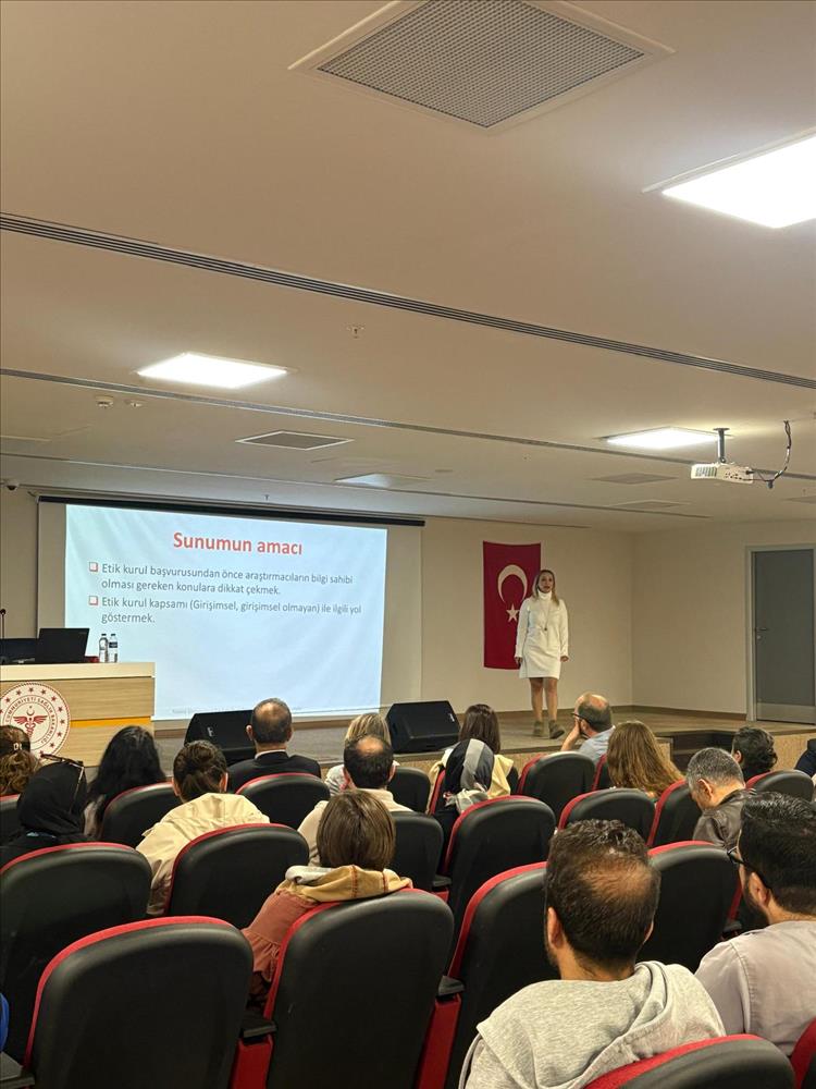At the informational meeting organized by the Faculty of Medicine at Yalova University, our faculty member from the Department of Pharmacology, Dr. Nihan Küçük Yılmaz, provided information to our academic staff about the Medical Research Ethics Committee.