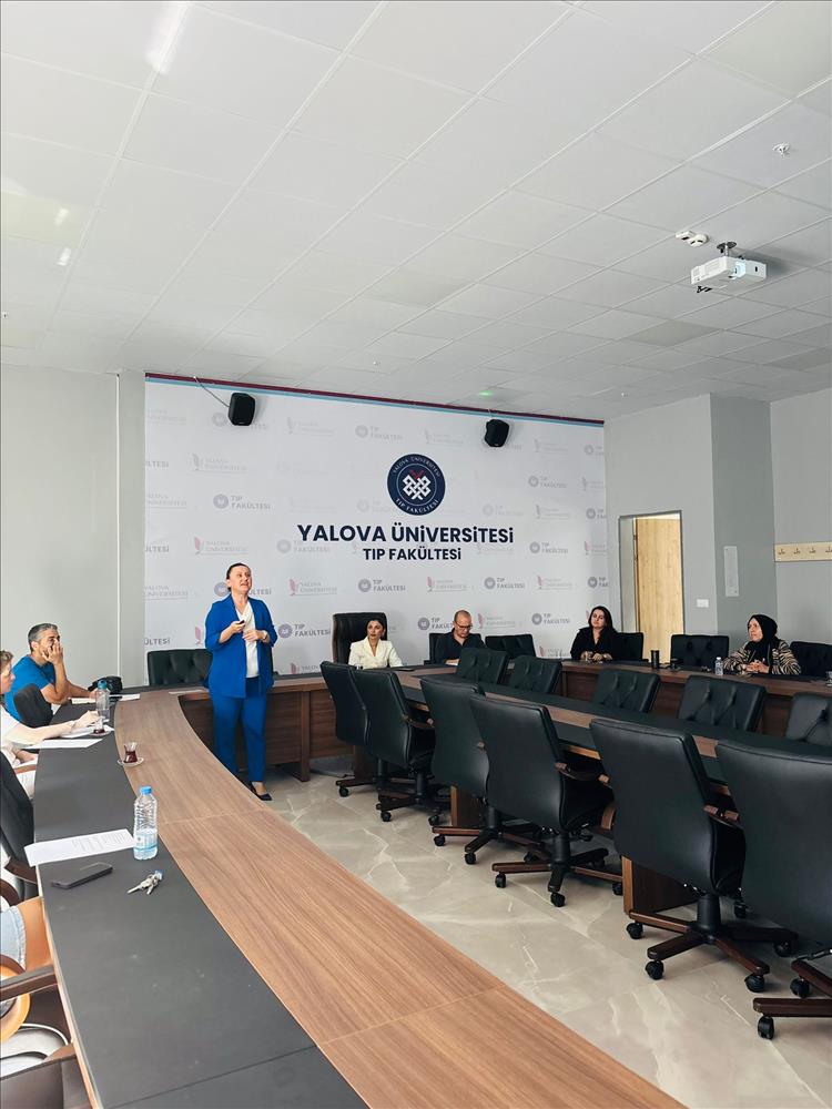The coordination members were provided with detailed information on the quality assurance processes defined by the Higher Education Quality Council of Türkiye (THEQC). Informative presentations were delivered on the preparations required for the IAP process, the principles of drafting the ISER, and the effective use of the PDCA cycle in quality management.